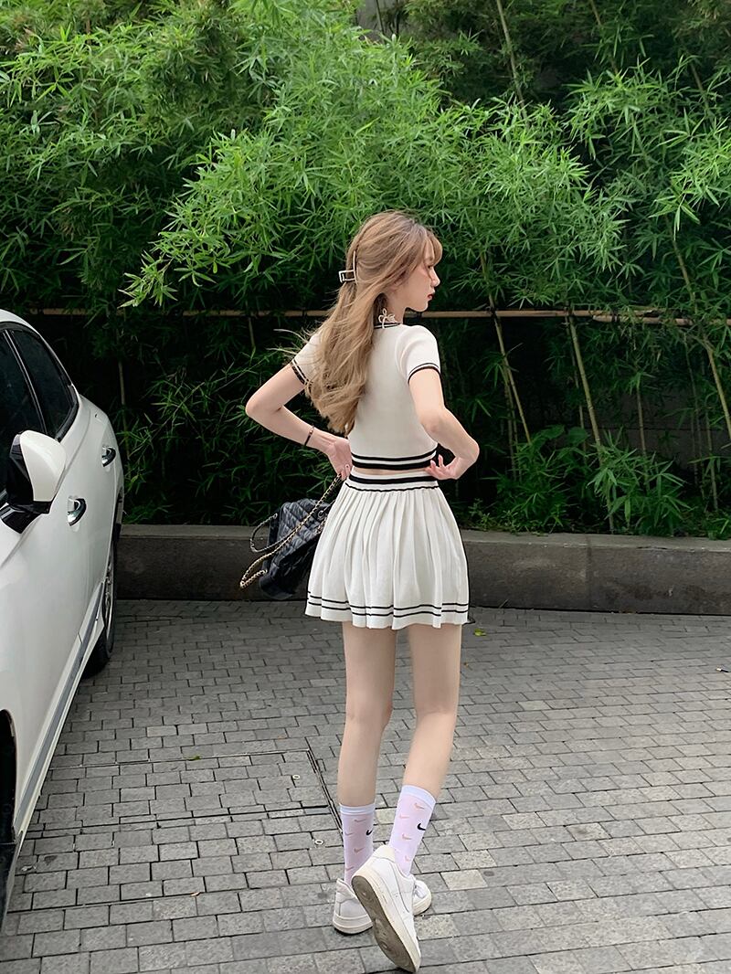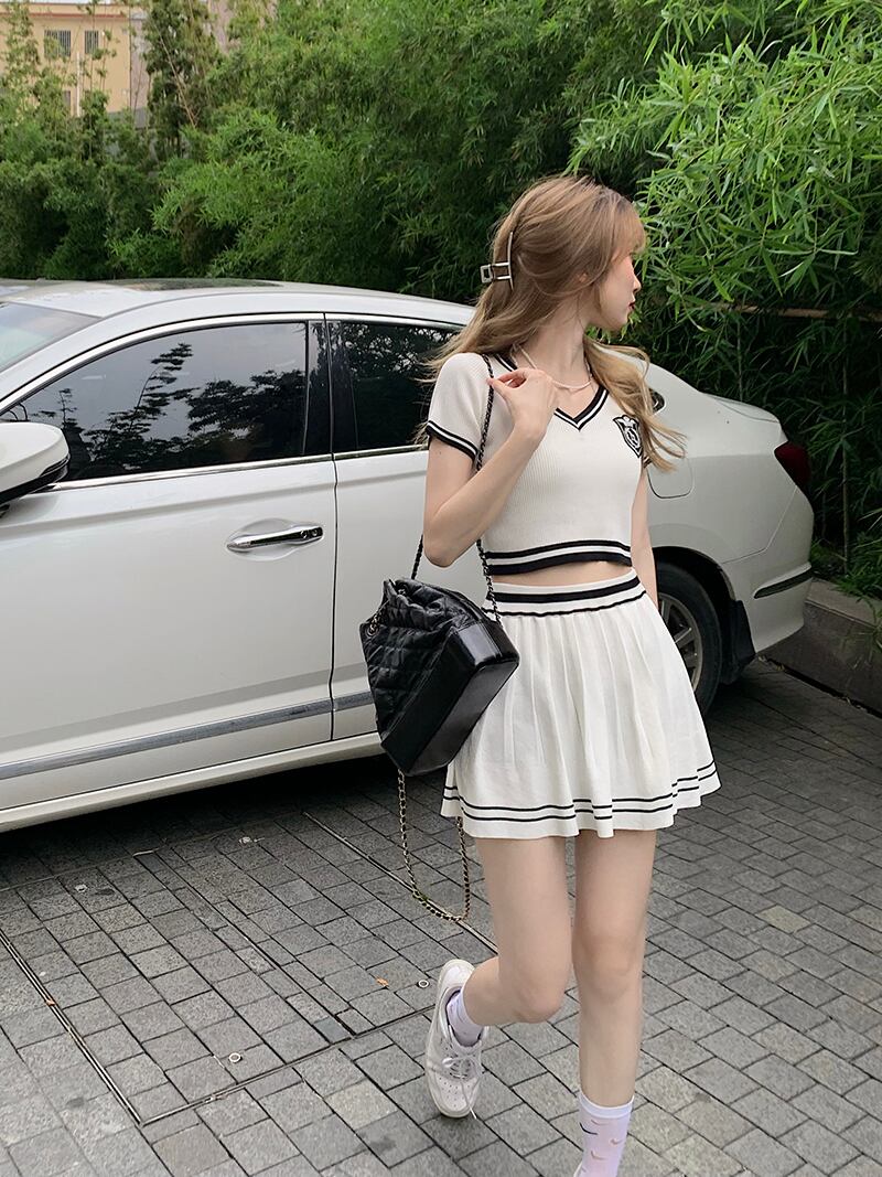スタイルサマースタンダードカラーVネックトップス スカート レトロ 夏物 kumikum68944819164