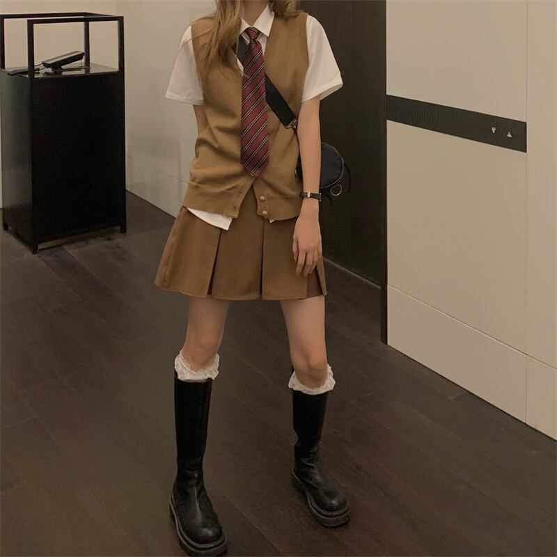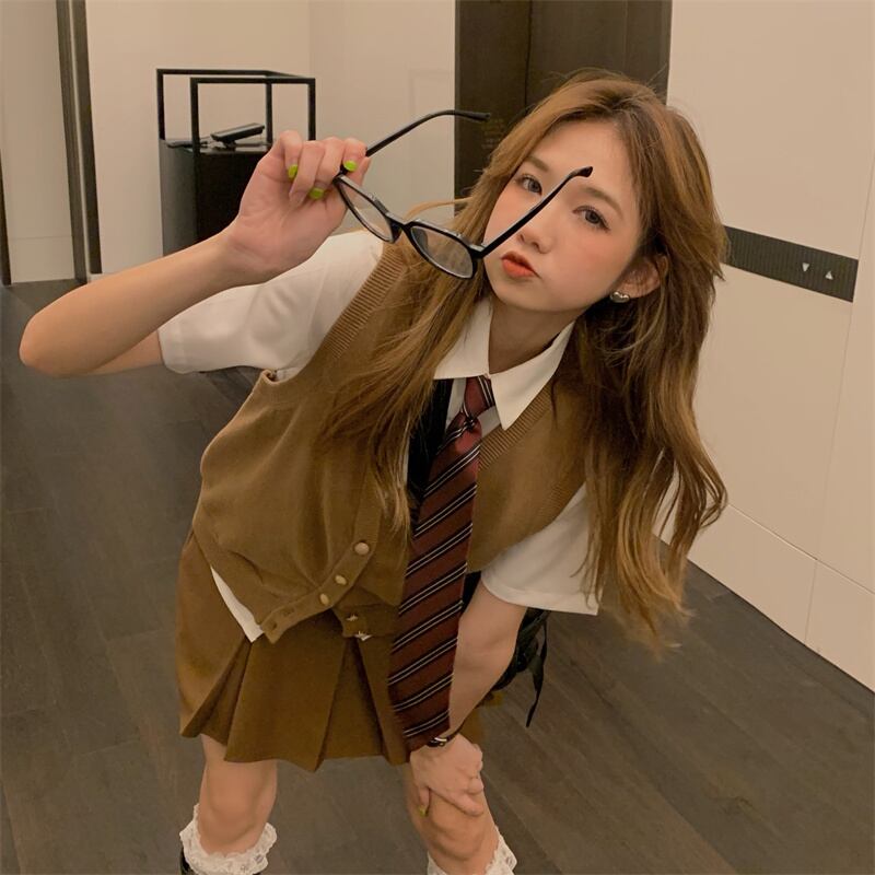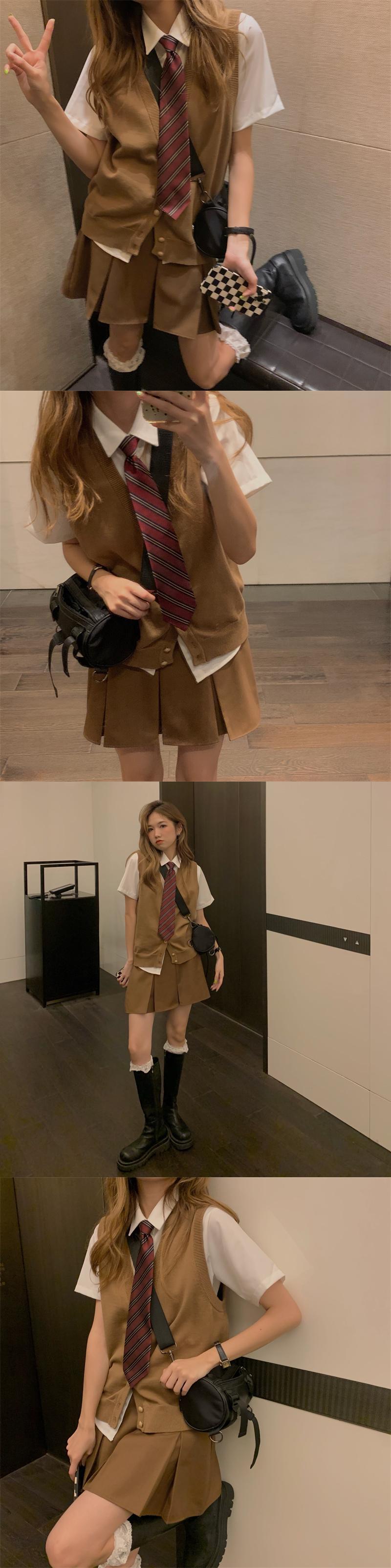 色:白いシャツ(ネクタイ付き),ニットベスト,短いスカート