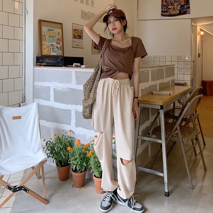 ワイドレッグパンツ レディースハイウェストウェストサマー薄手ルーズカジュアル 夏物 ワイドパンツ kumikum29104841757