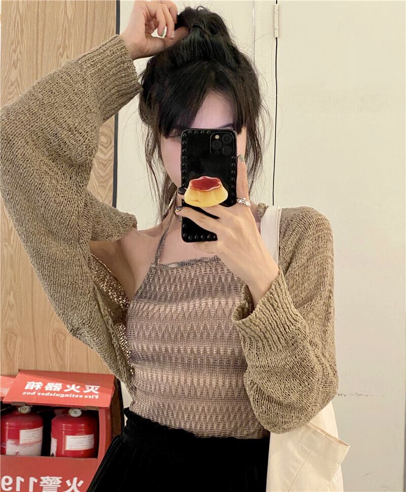 スタンダードサマー薄手ニットカーディガンショートスリムレディース レトロ ストリート 夏物 kumikum31003439954