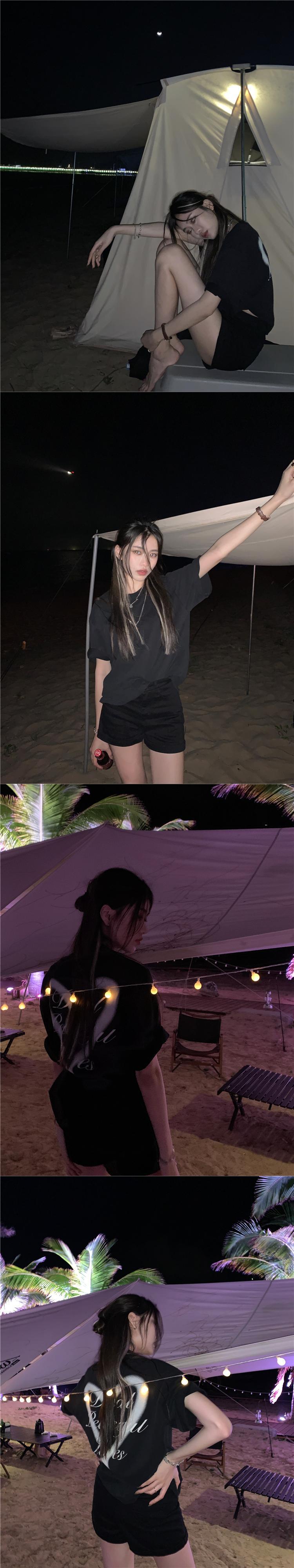 ハートプリント柄ルーズTシャツ シャツ サマープルオーバー 夏物 kumikum15040695709