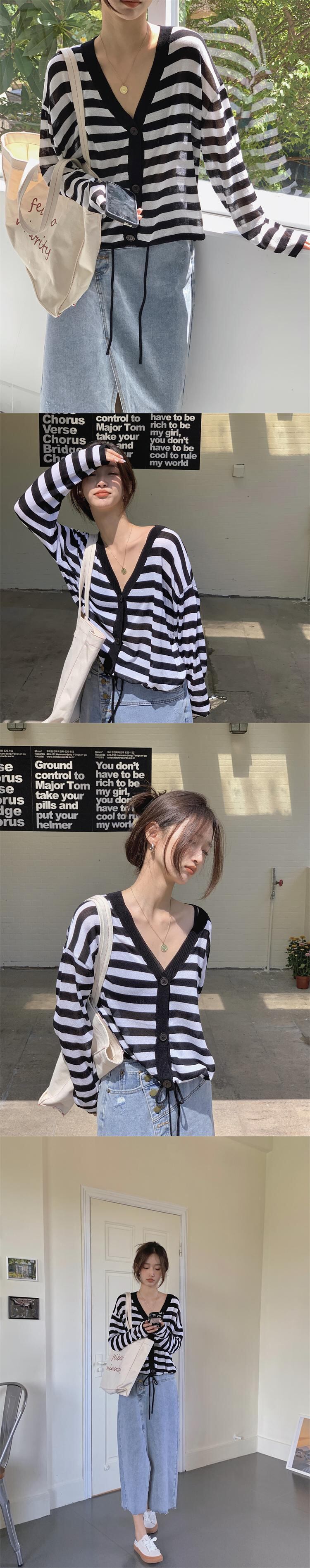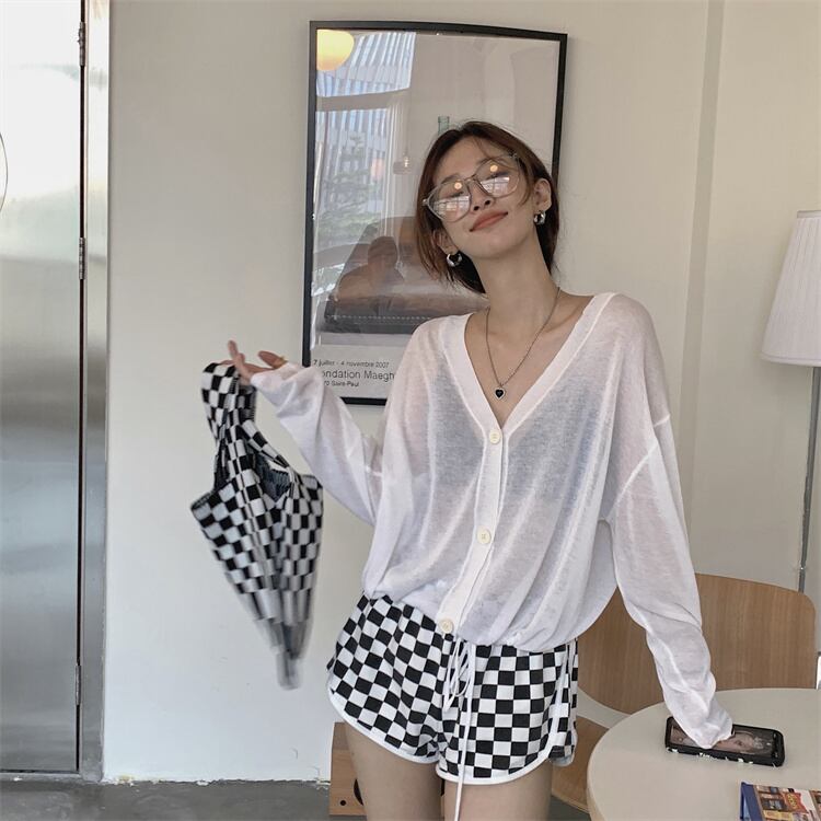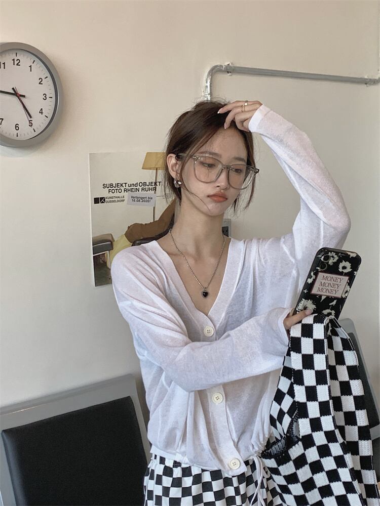 スタイルVネック薄手ルーズニットカーディガンサマーショートトップス レディース ロング 夏物 kumikum36336508722