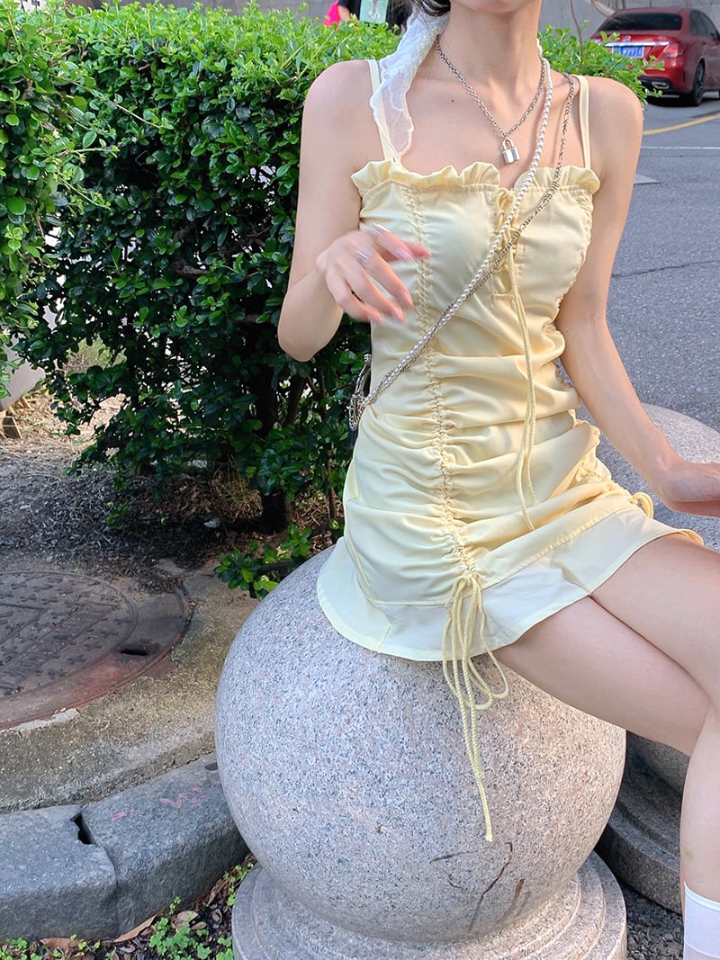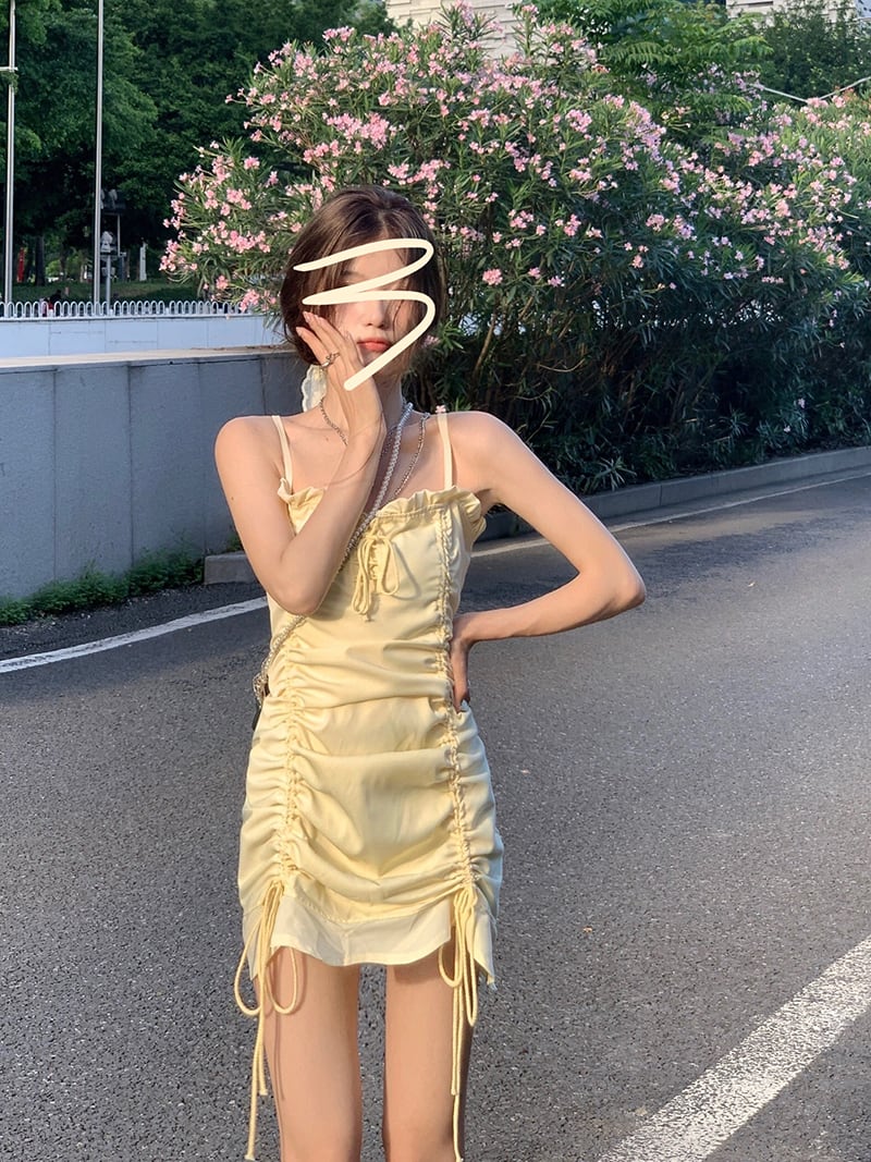 ギャザースリムドレス サマーノースリーブ 大人ガーリー スウィート キュート カジュアル 夏物 kumikum19416180648