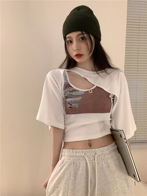 サマーレディーススタンダードスリムショートTシャツ レトロ ストリート 夏物 kumikum80768888347
