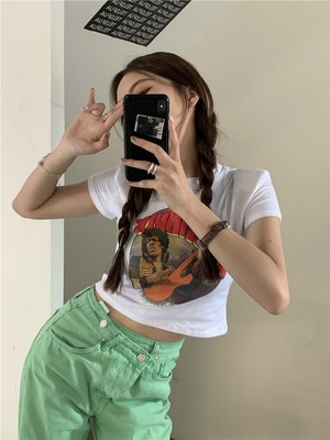 ショートTシャツ レディースサマーラウンドネックスリムプリントトップス 夏物 Oネック kumikum6228238364