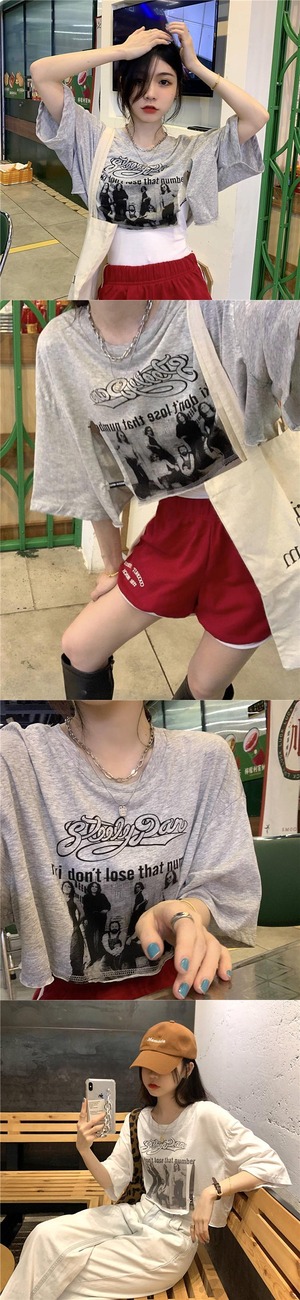 プリントTシャツ サマーショートトップス ストリート 夏物 kumikum67153989761