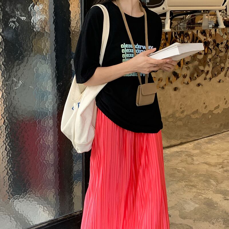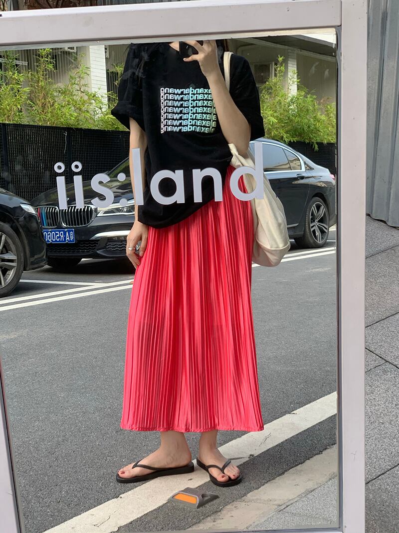 レディースサマープリントTシャツ ハイウェストプリーツスカート 夏物 kumikum49221109578
