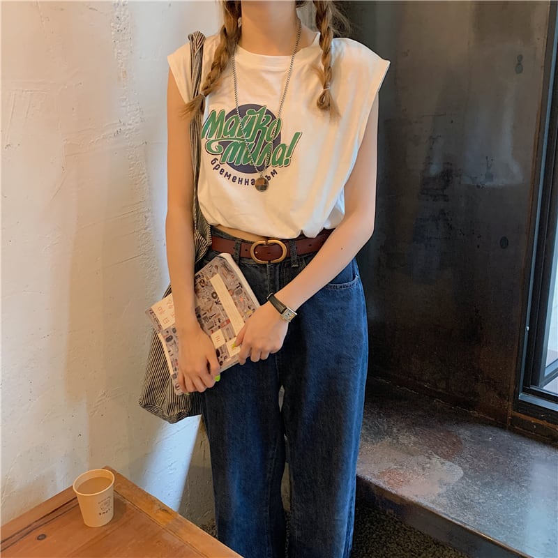 ノースリーブTシャツ シャツ レディースサマースタンダードプリントルーズ薄手トップス レトロ 夏物 kumikum60134260821