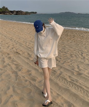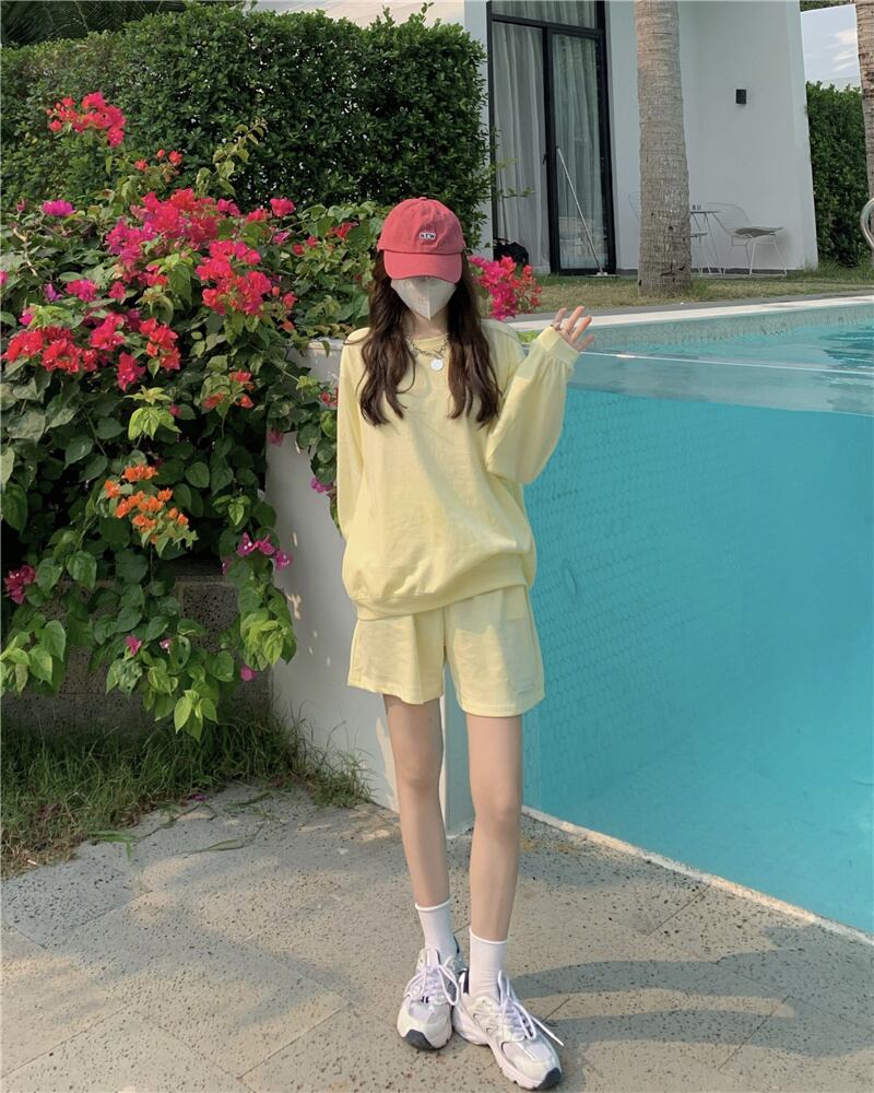 カジュアルサマー薄手ルーズセーター ワイドレッグショーツ 夏物 ブルマー ワイドパンツ kumikum95674224315
