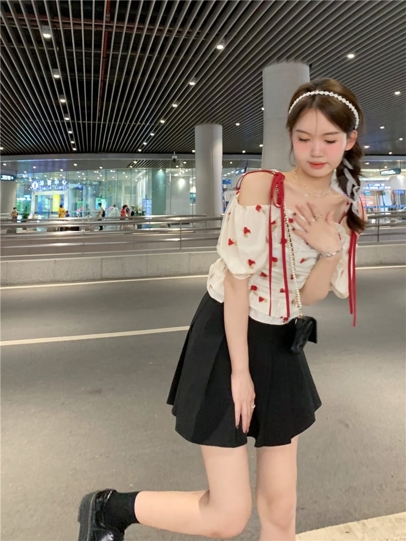 刺繍バンドスリムブラウス サマーワンショルダーシフォンシャツ レディース 大人ガーリー スウィート キュート カジュアル 夏物 kumikum33929702824