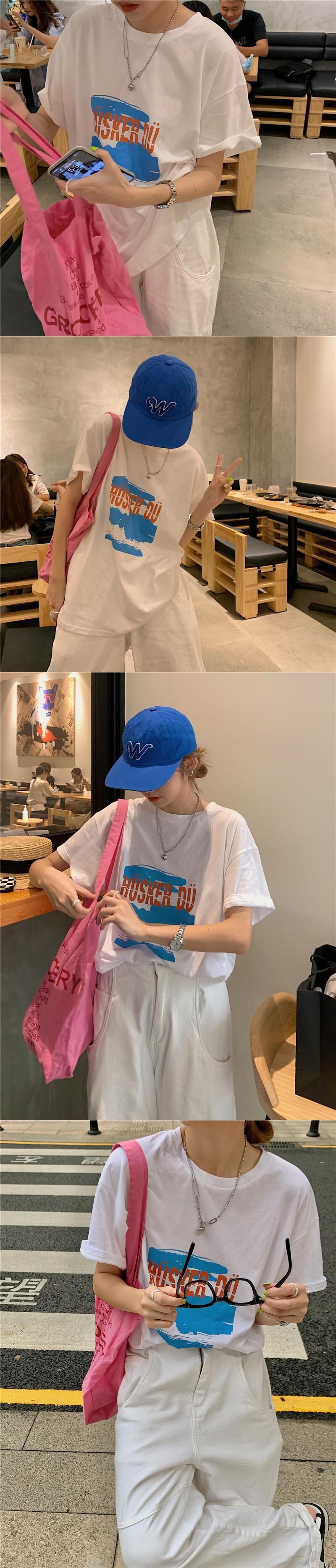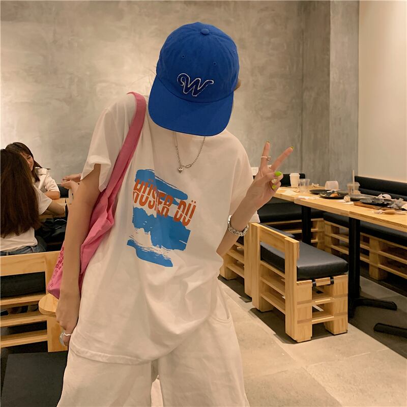 スタンダード薄手ルーズプリントTシャツ サマーカジュアルトップス レディース レトロ 夏物 kumikum89147889463