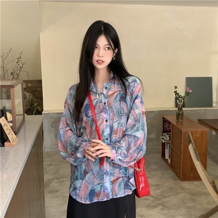 プリント薄手シャツ サマールーズレディース ロング 夏物 kumikum27513480424