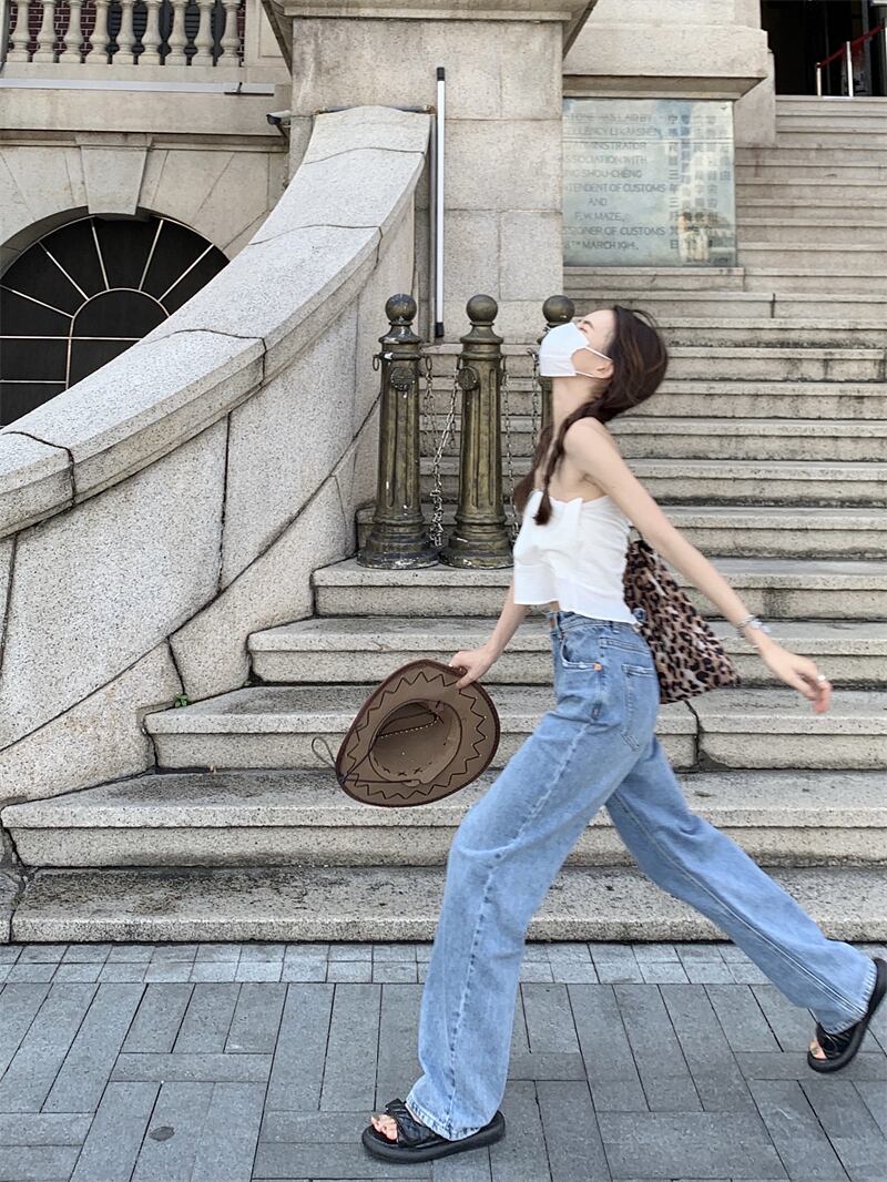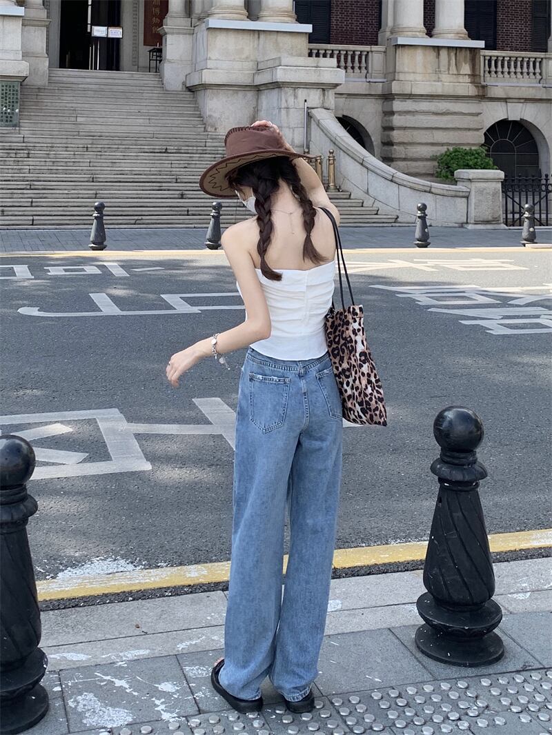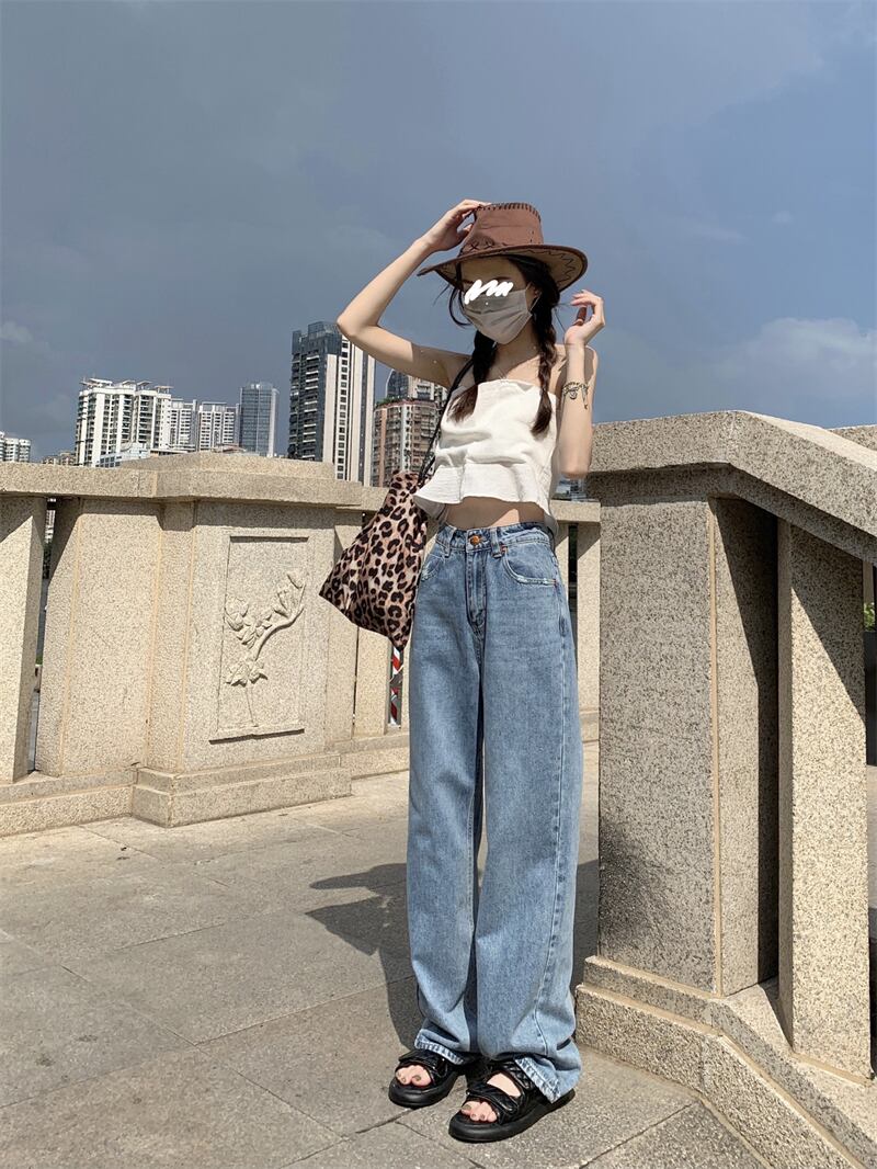 スタンダードジーンズ サマーパンツ ウェスト薄手ワイドレッグルーズ レトロ 夏物 ワイドパンツ kumikum39636999709