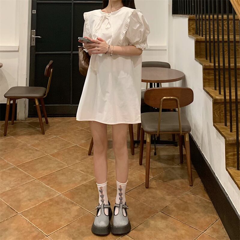 ホワイトシャツ スカート サマースリーブ薄手ルーズドレス 夏物 kumikum3996364606