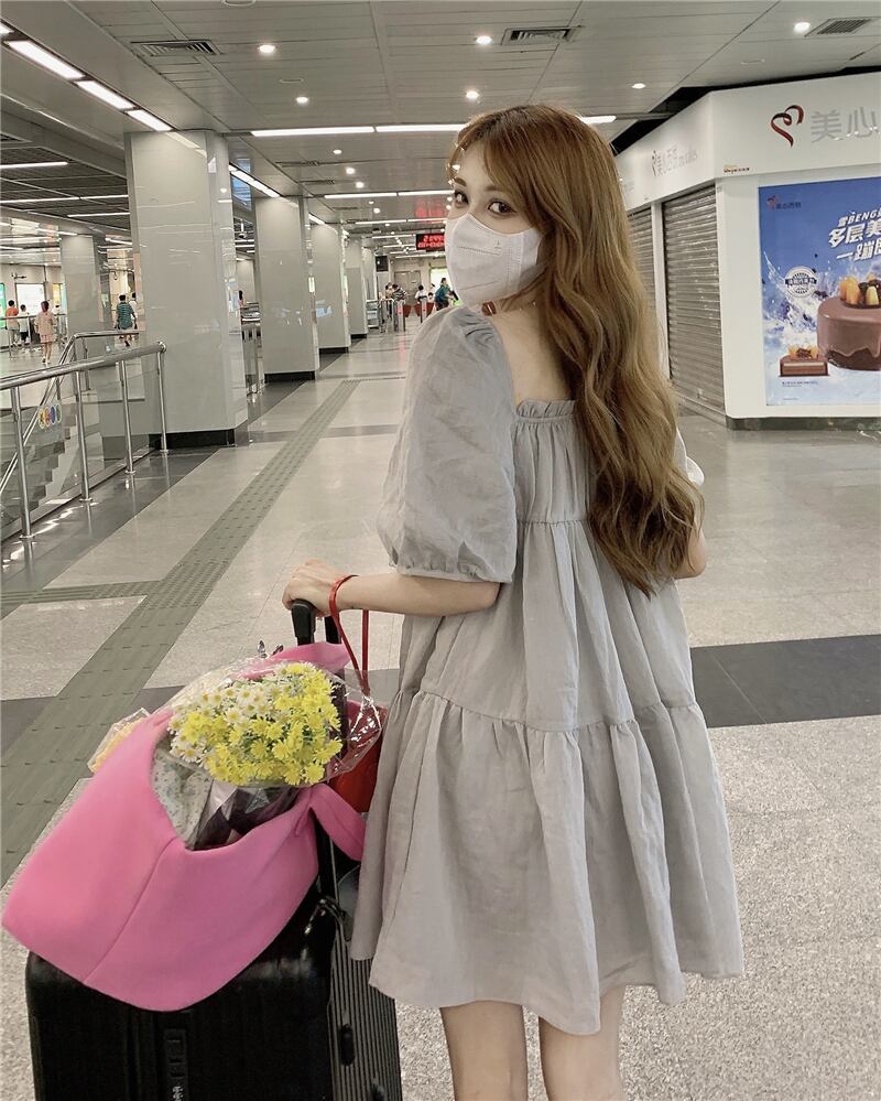 スリーブシフォンAラインドレス サマー薄手ルーズレディース リボン 夏物 kumikum82454624281