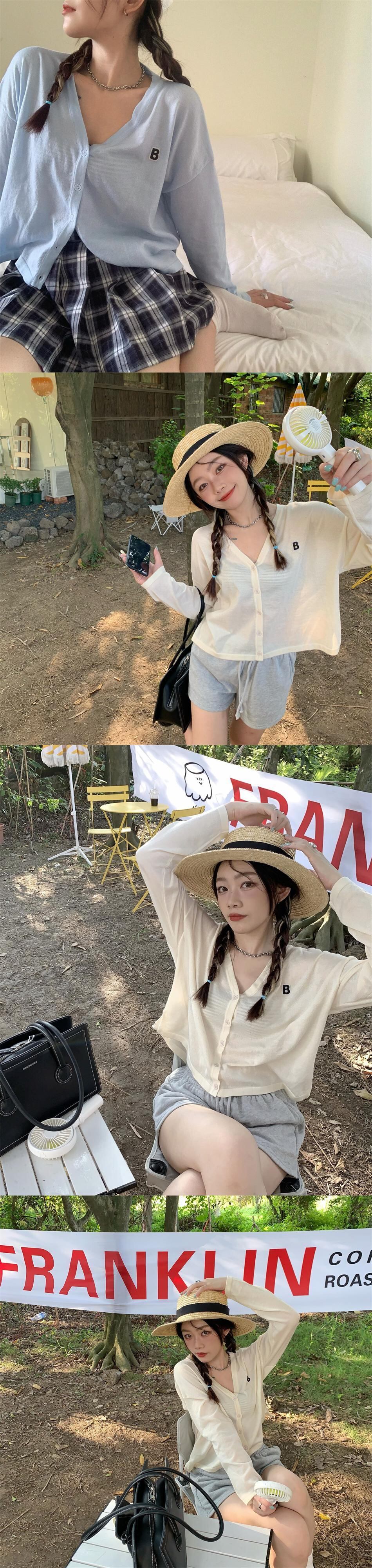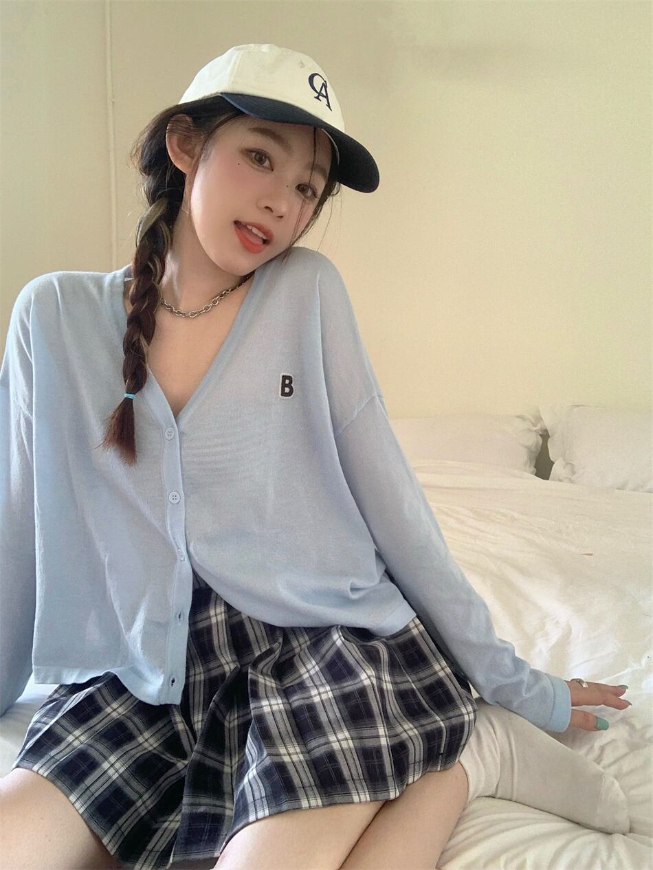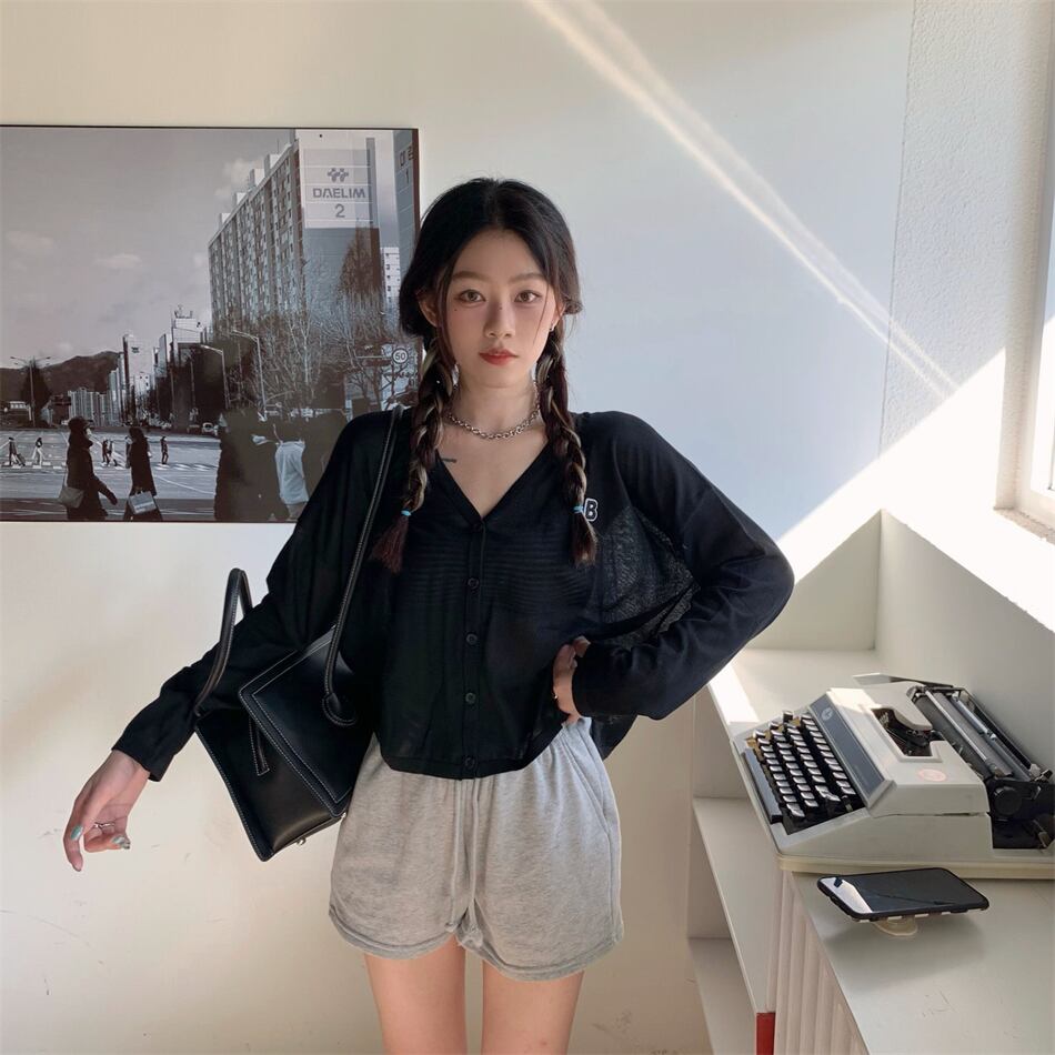 ルーズVネック刺繍薄手カーディガンサマーニットセーター レディース 夏物 kumikum53584160986