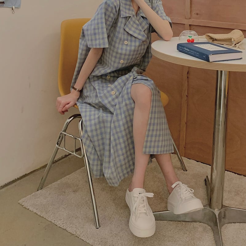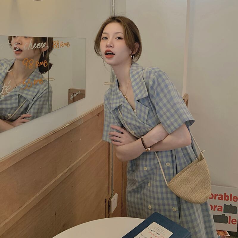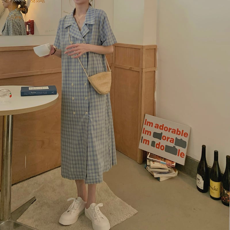 ルーズドレス サマースタンダード格子柄スカート 薄手Aライン レトロ 夏物 kumikum60612917875