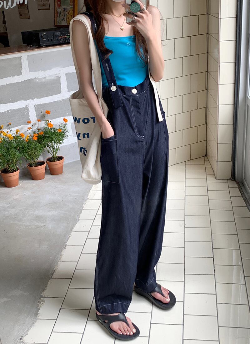サマー薄手オーバーオール ハイウェストウェストルーズワイドレッグパンツ レディース 夏物 ワイドパンツ kumikum74318500035