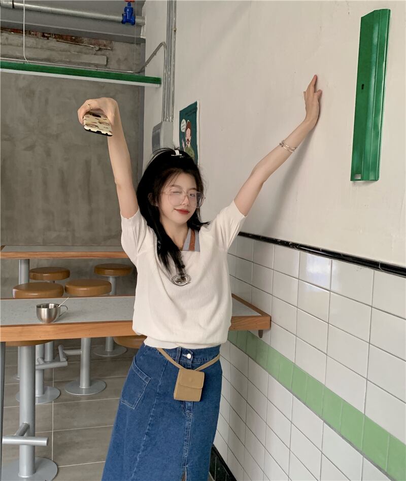 刺繍カラーVネックセーター サマールーズ薄手ブラウス 夏物 kumikum94019468746