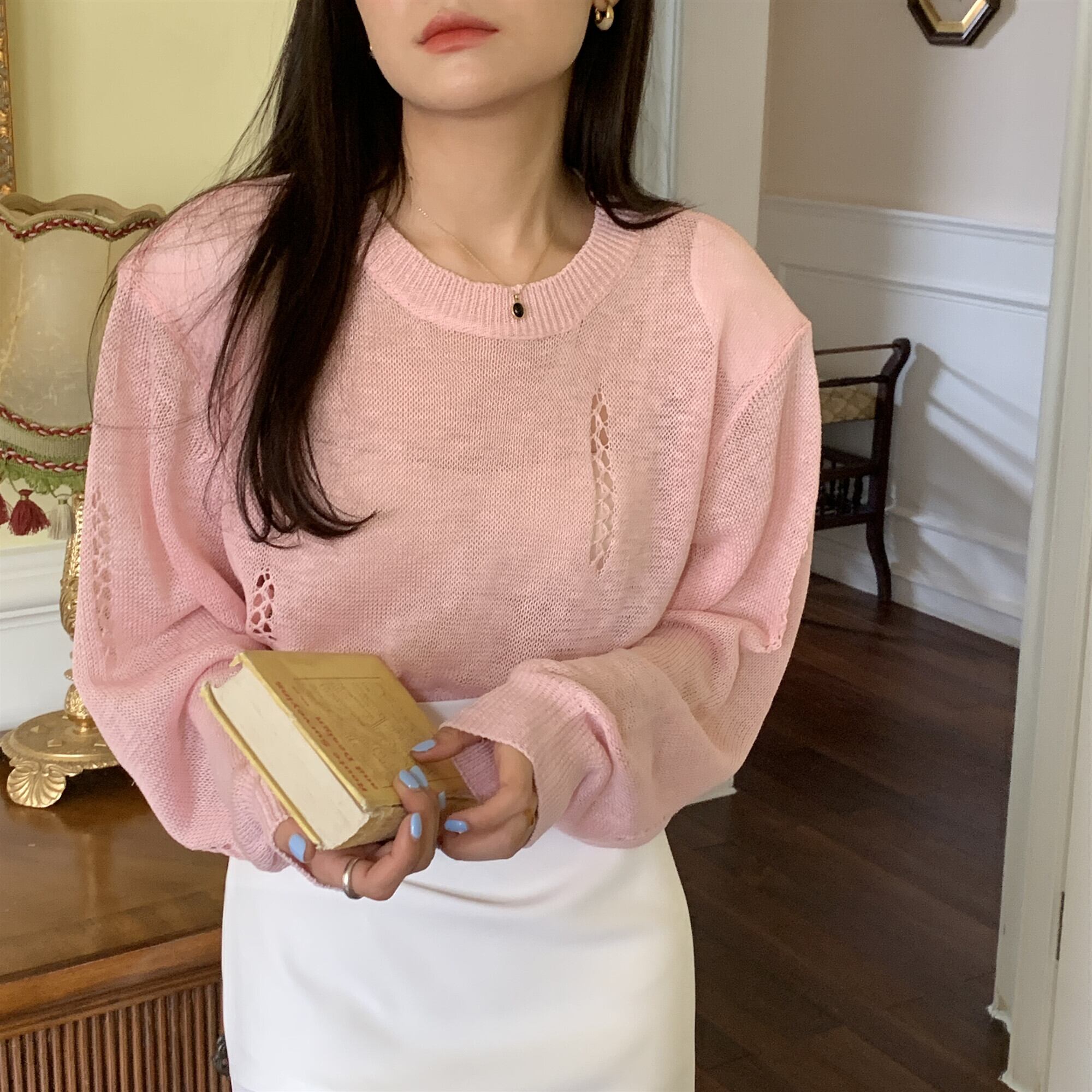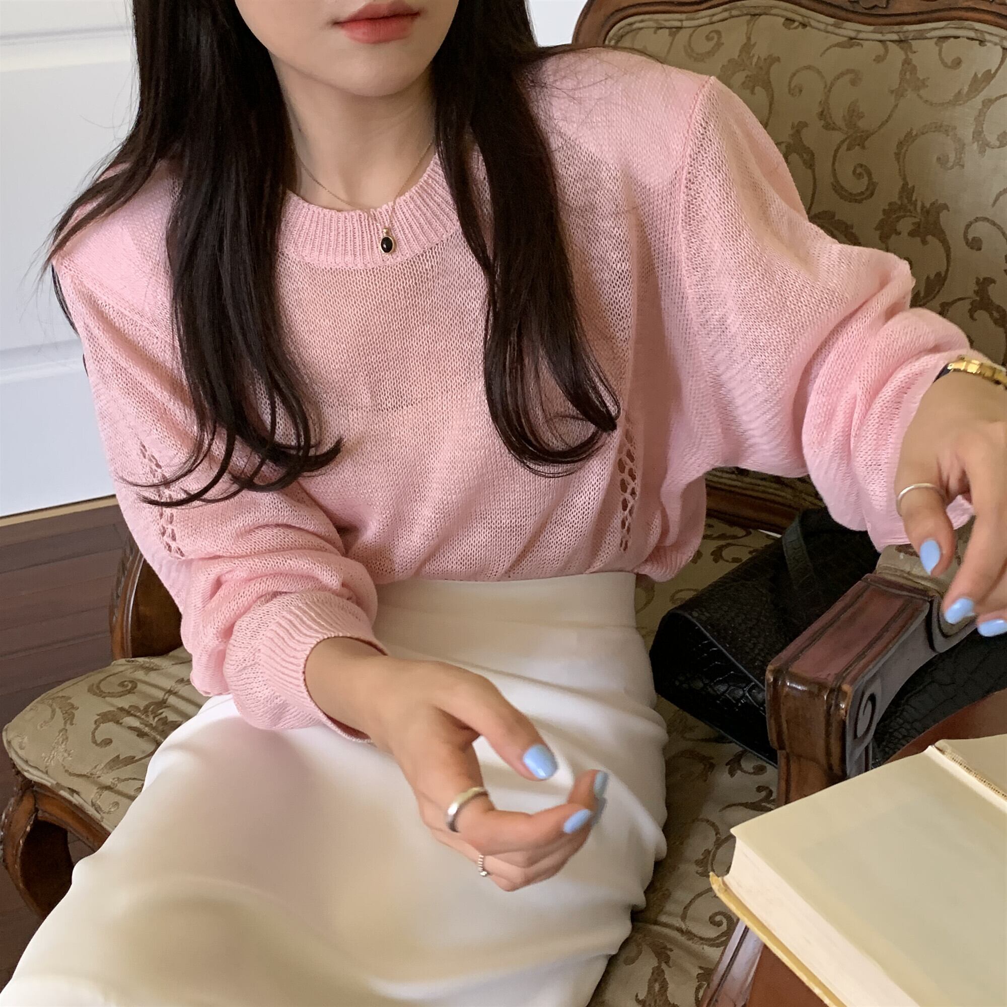 薄手ルーズソリッド カラートップス サマーセーター ロング 夏物 ソリッドカラー kumikum98670019888