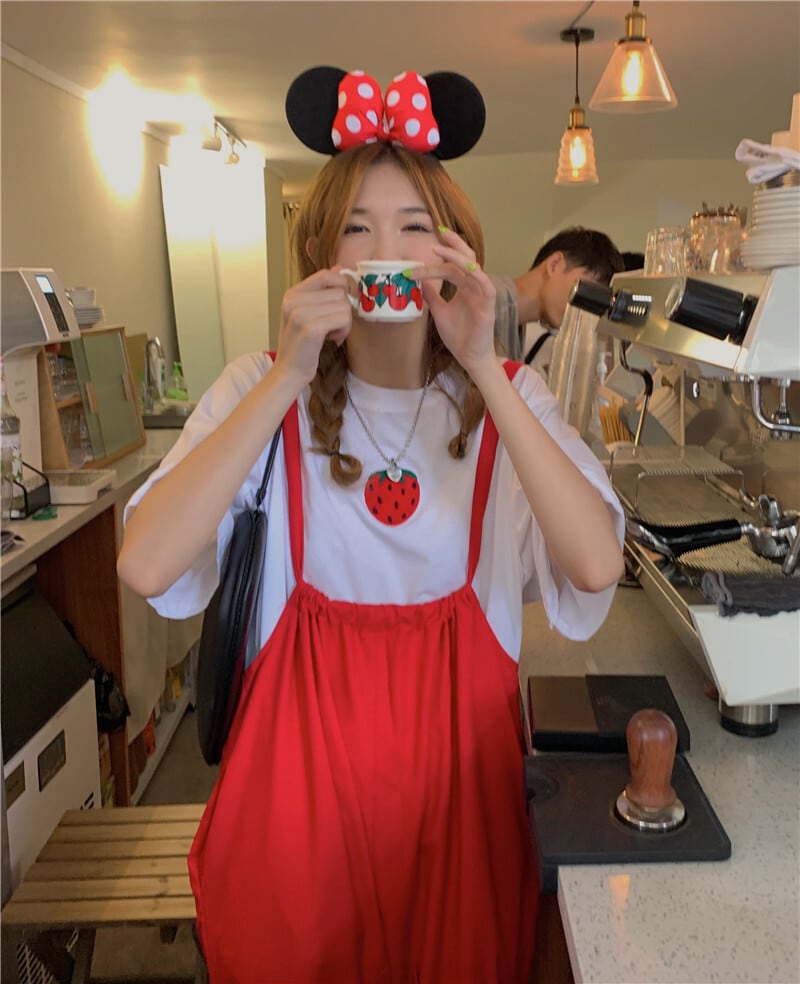 色:ストロベリーT3929#,赤いオーバーオール3928#