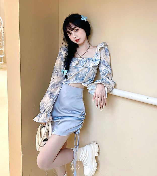 スタイルショートスリムシャツ サマーフローラルブラウス ロング 大人ガーリー スウィート キュート カジュアル 夏物 花柄 ピュア kumikum44937548676