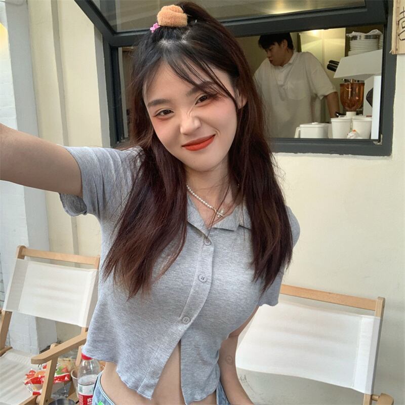 ニットTシャツ シャツ サマー薄手スタイルスリムクロップドショートトップス 夏物 ピュア kumikum4046939234