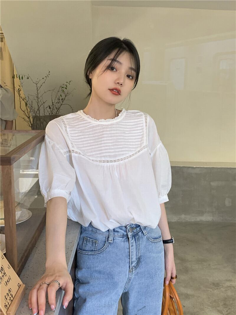 薄手スリーブシャツ サマーホワイトブラウス レディース 夏物 kumikum83226444997