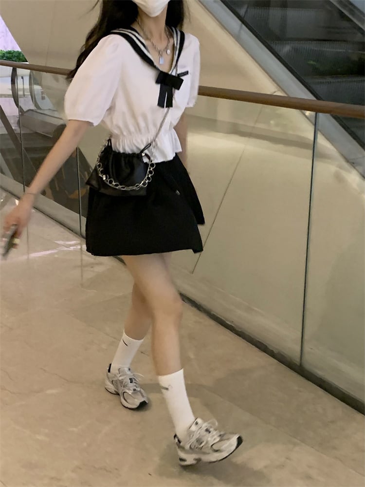 色:白のシャツ,プリーツスカート(S),プリーツスカート(M)