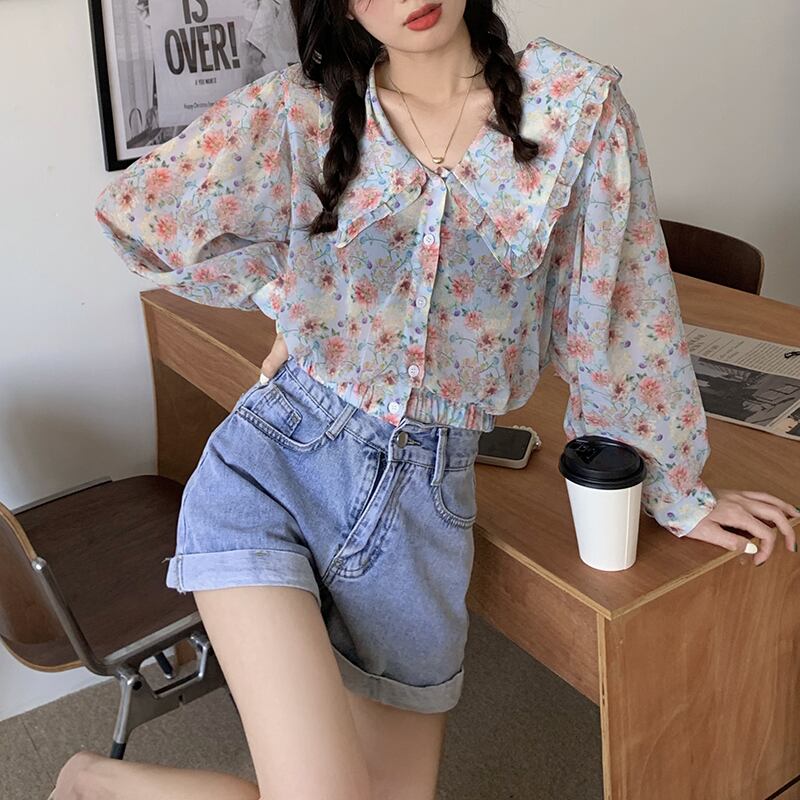 スタイルフローラルシフォンシャツ サマーカラールーズトップス ロング 夏物 花柄 kumikum72609032020