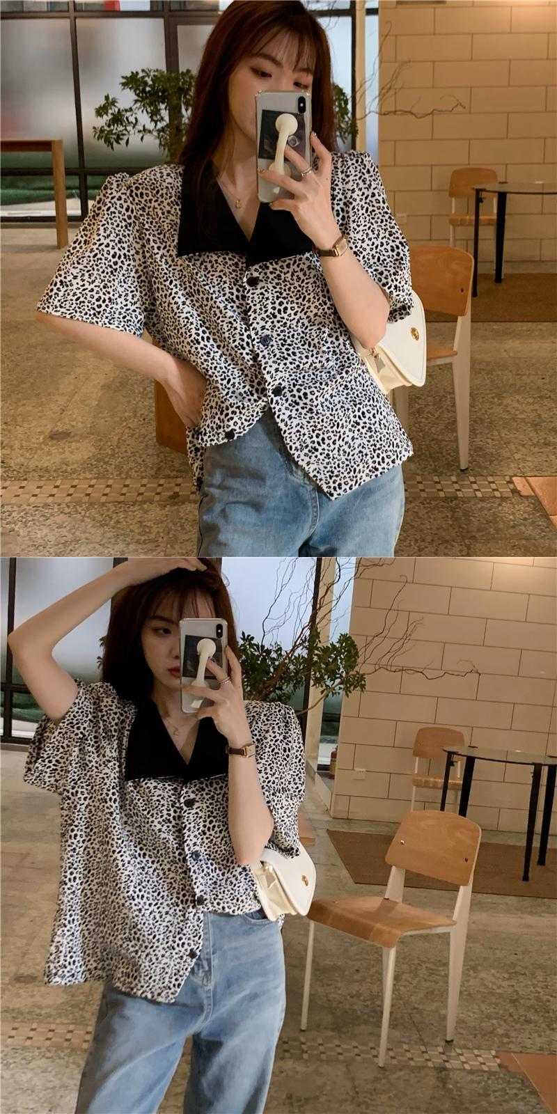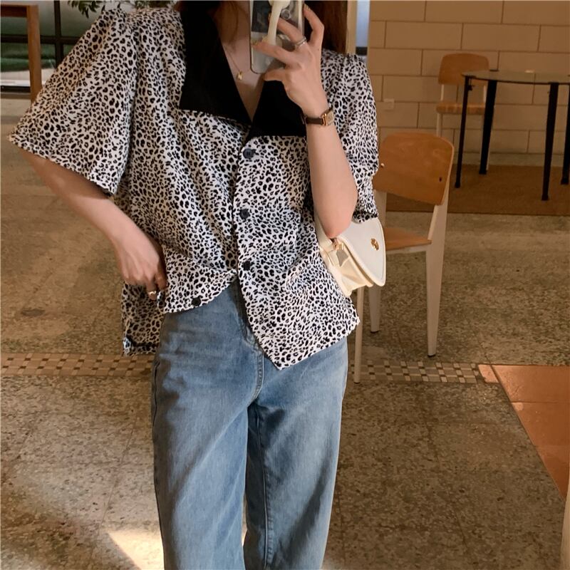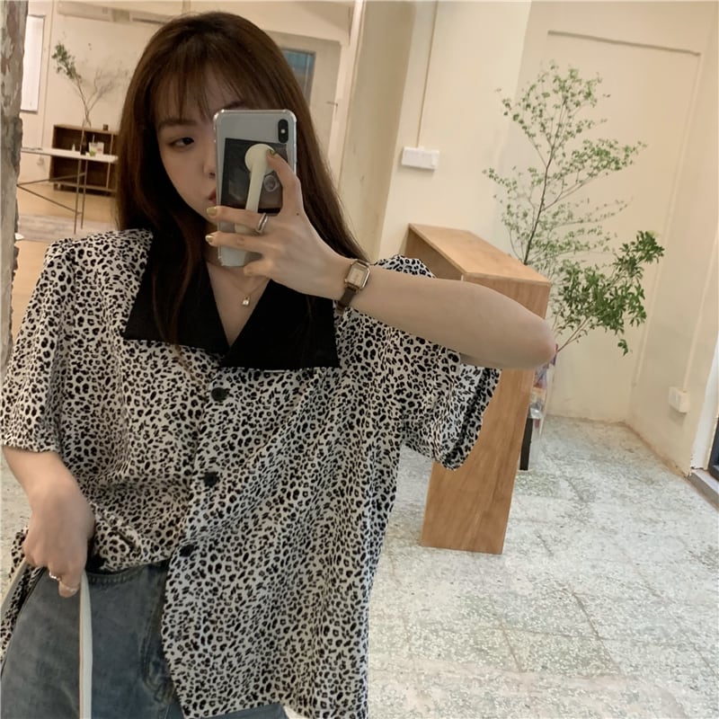 レオパードプリント柄シャツ サマー薄手ルーズスタンダードカジュアルレディース レトロ 夏物 kumikum285639146
