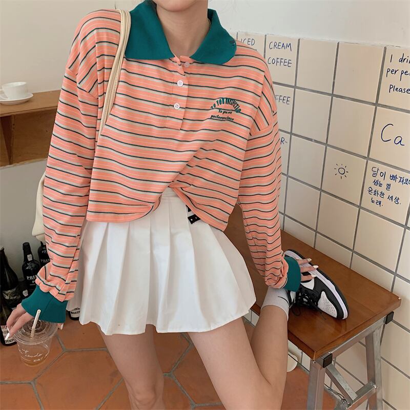 薄手サマーカラーストライプTシャツ レディース レッド ブラウス 刺繍 夏物 kumikum8071976759