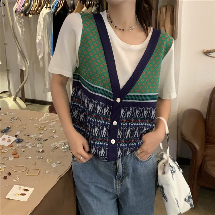 ニットTシャツ サマー薄手ルーズトップス 夏物 ステッチ kumikum44683986870