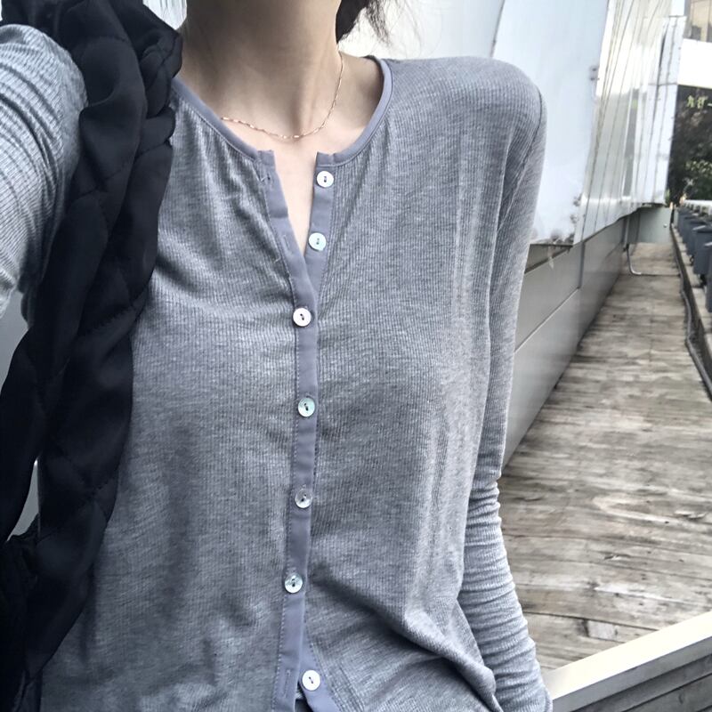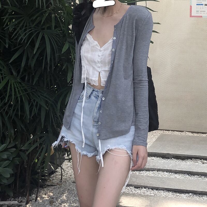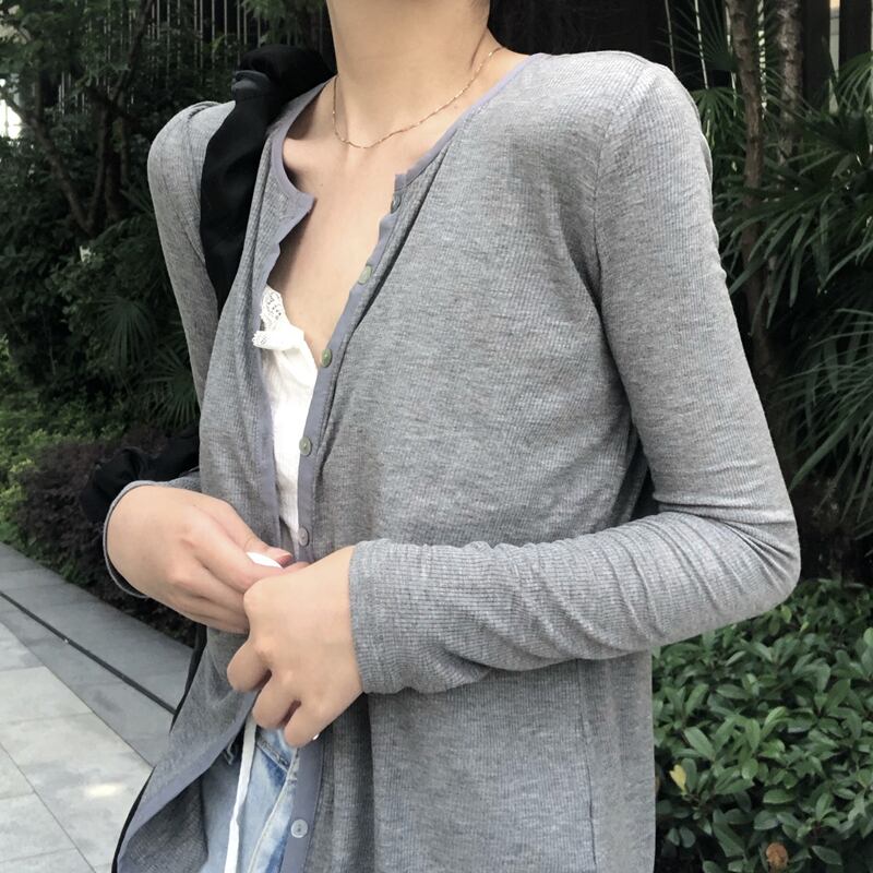 カラー長袖スリーブニットカーディガンサマー薄手ジャケット スリムトップス ロング 夏物 ピュア kumikum17012339971
