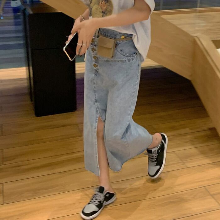 ハイウェストウェストAラインスカート サマースタンダード レトロ 夏物 kumikum7259282434