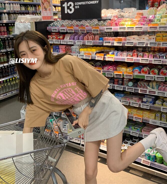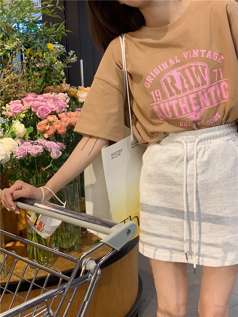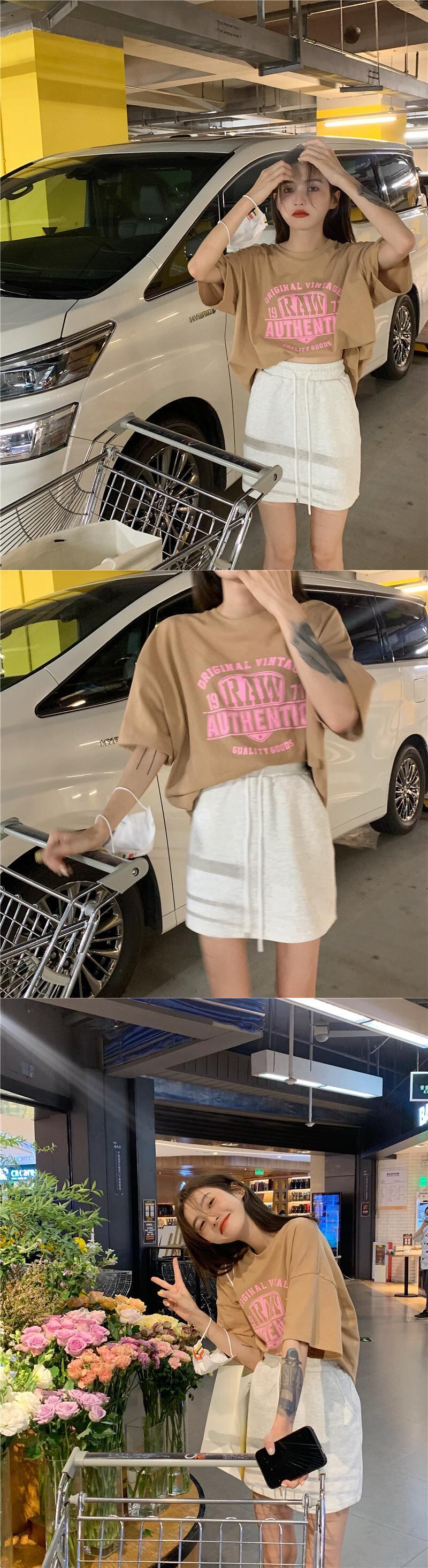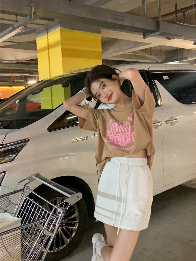 薄手ルーズカジュアルTシャツ レディースサマースタンダードプリント柄トップス レトロ 夏物 kumikum90105769127