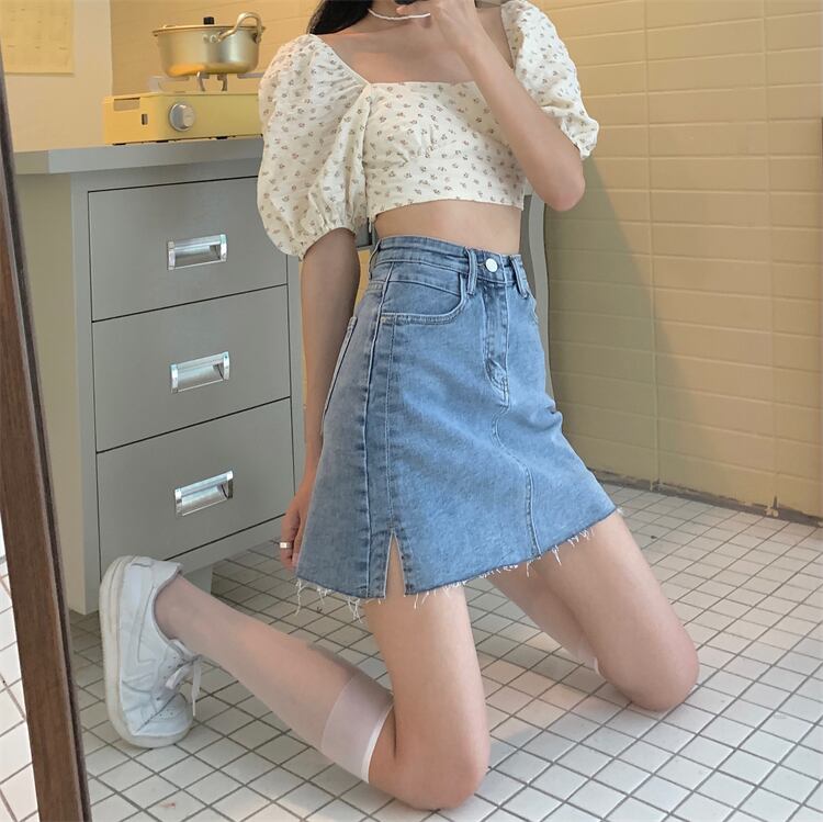 スカート ハイウェストウェストサマースタンダード薄手Aラインショート レトロ 夏物 kumikum47508730170