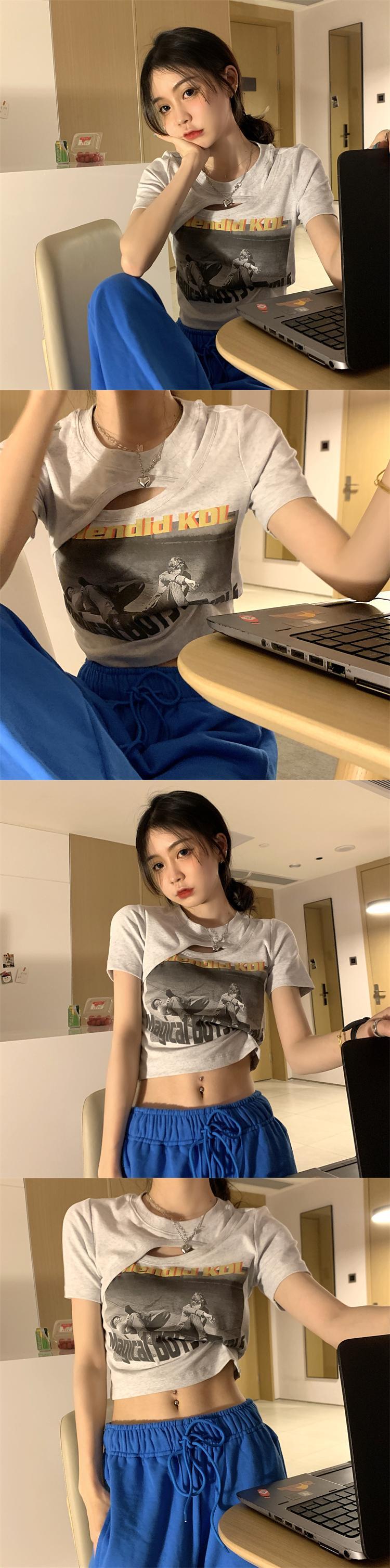 ブラウス ショートシャツ サマークロップドTシャツ 夏物 kumikum88861550956