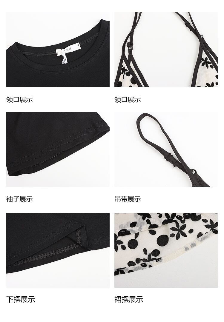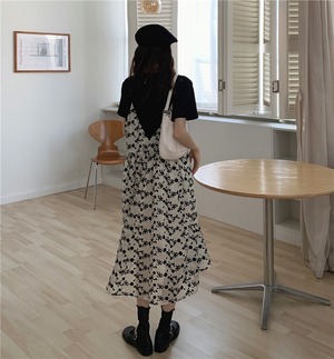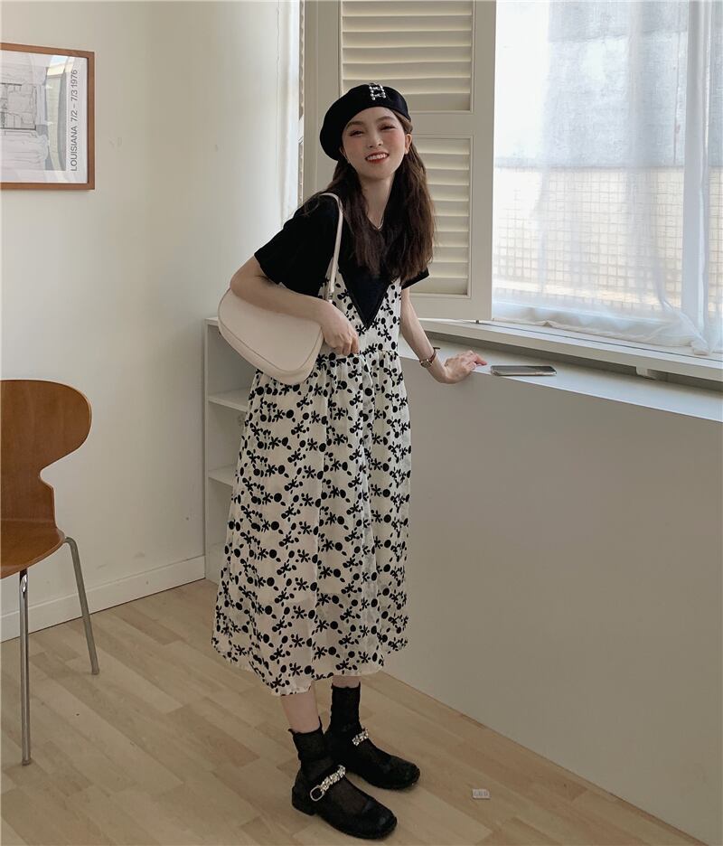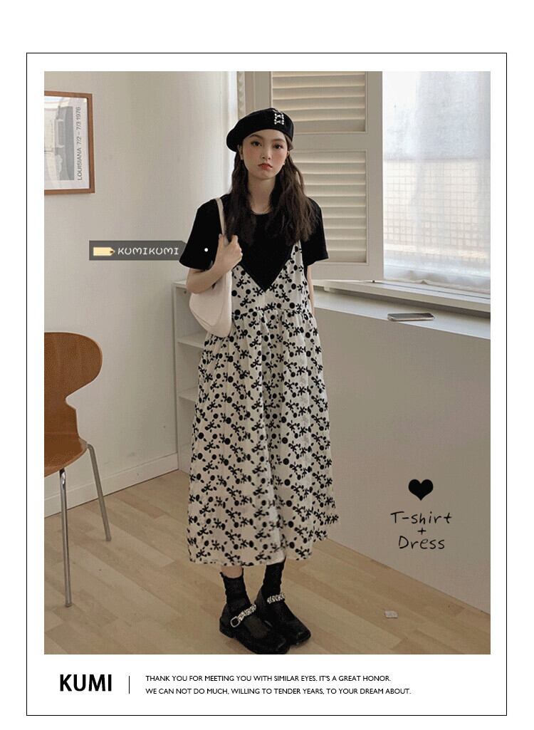 スタンダードフローラルドレス サマーブラックTシャツ レトロ 夏物 花柄 kumikum21772054861