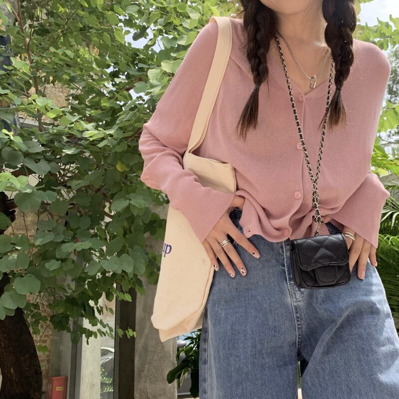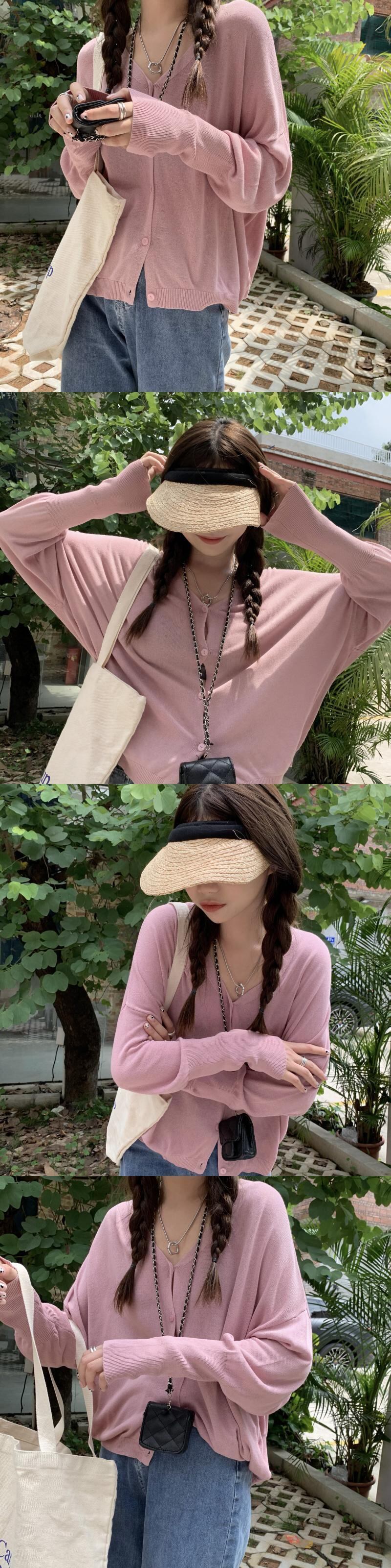 サマーカラーVネック薄手ニットトップス ルーズジャケット ロング 夏物 kumikum43455684615