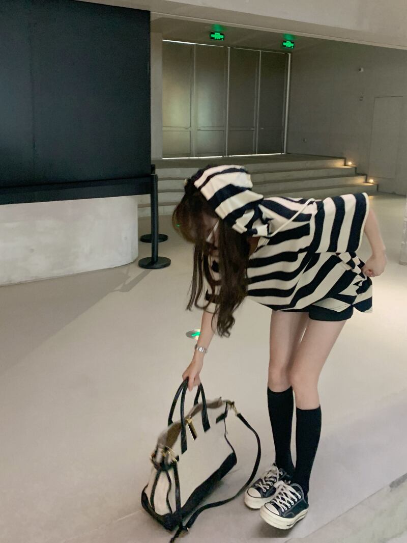 色:ストライプのフード付きドレス