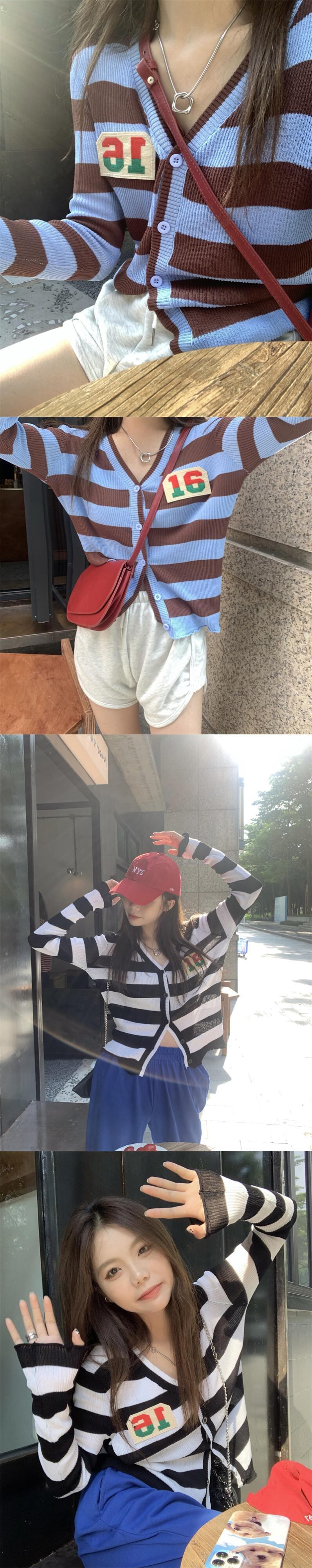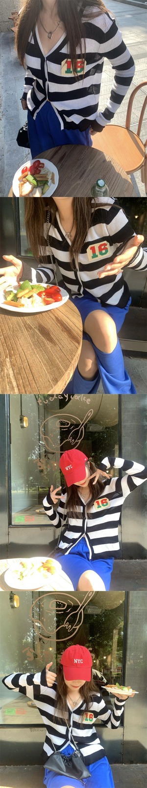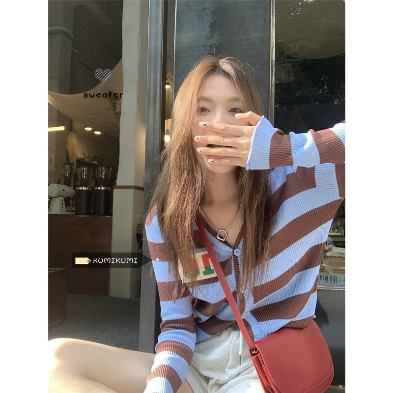 スタイルVネックルーズカジュアルカラーストライプトップス サマーセーター レディース ロング 夏物 kumikum58817185022