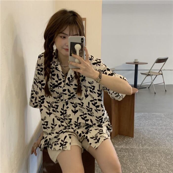 スタンダードFlowerデザイン カーディガンシャツ レディースサマールーズ レトロ 夏物 フラワーデザイン kumikum66978337650