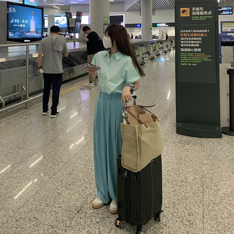 スタイルシャツ サマーブルーカジュアルパンツ レディース 夏物 kumikum23542117262