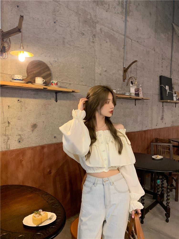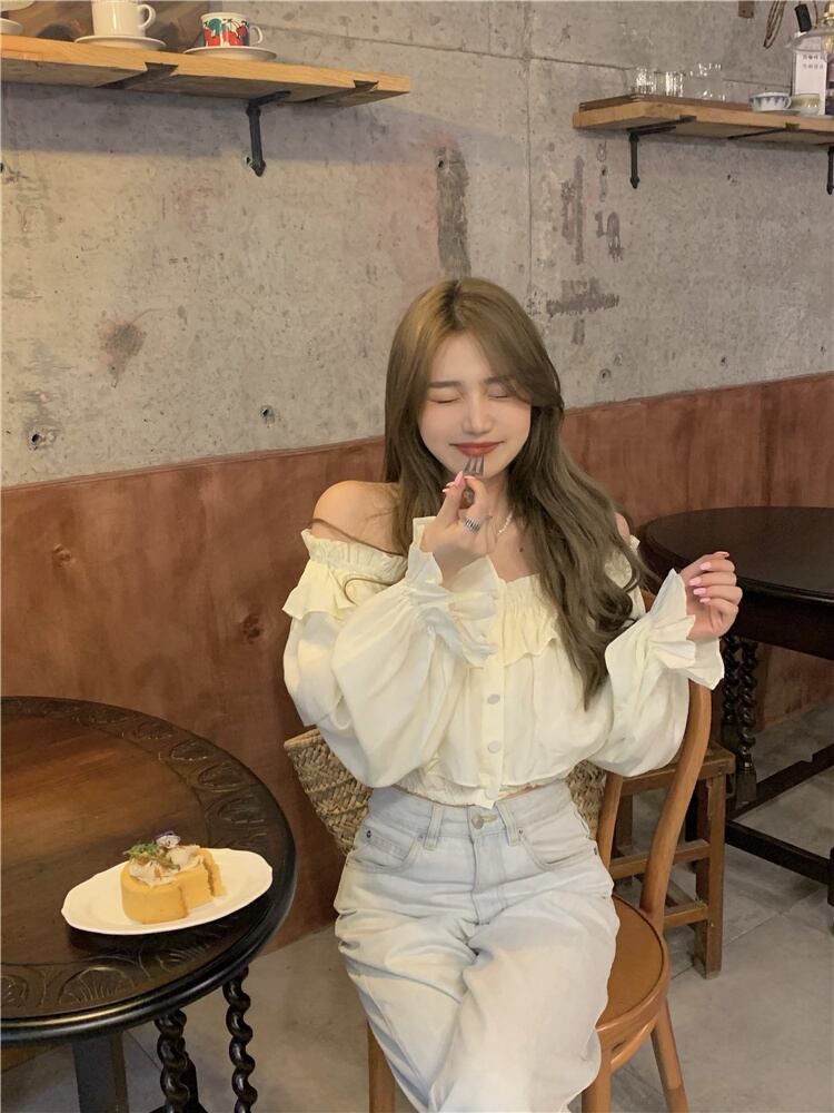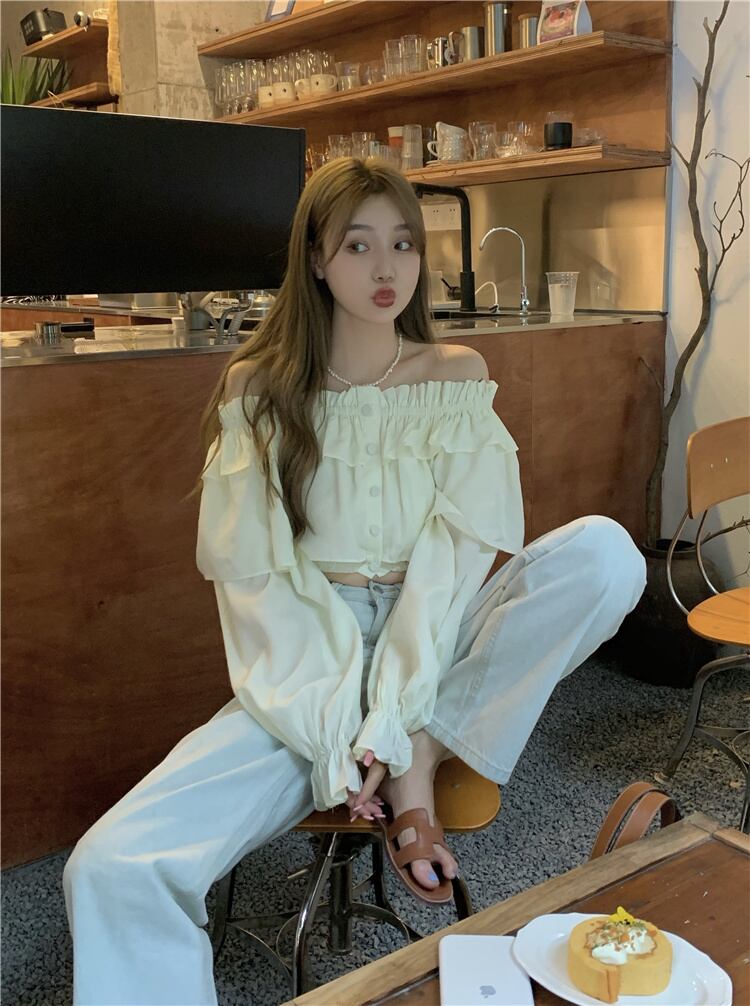 カラーブラウス サマーショートシフォンシャツ ロング 夏物 オフショルダー kumikum14980180452