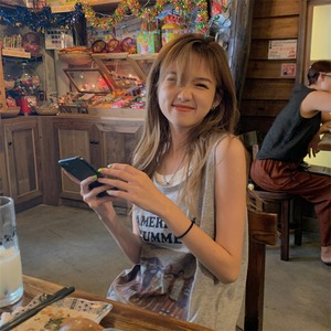 スタンダードプリント柄ノースリーブトップス レディースサマールーズ薄手Tシャツ レトロ 夏物 kumikum92993432549