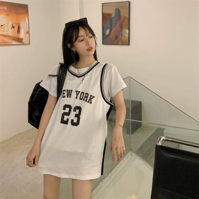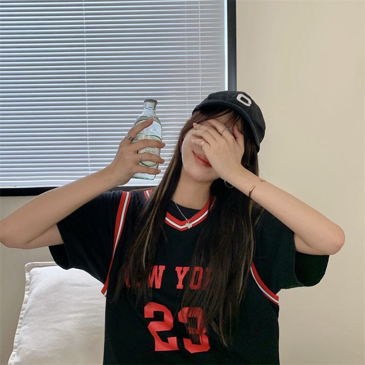 ルーズカラーVネックスリムトップス レディースサマーノースリーブTシャツ 夏物 kumikum85510308689