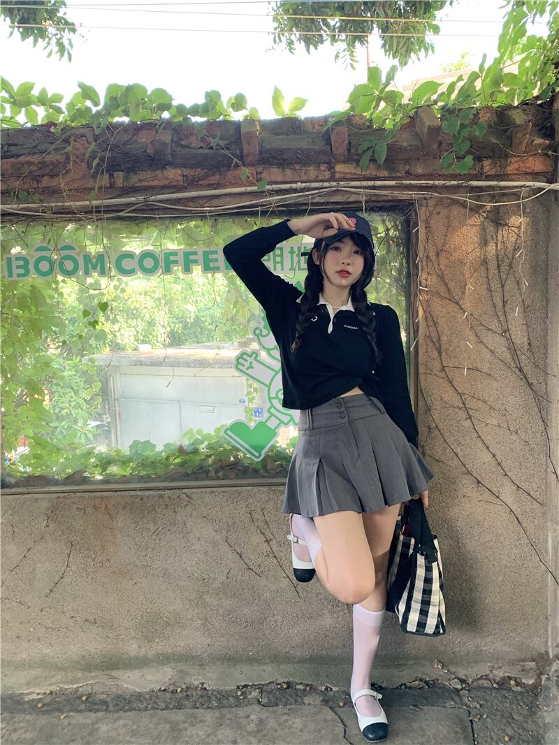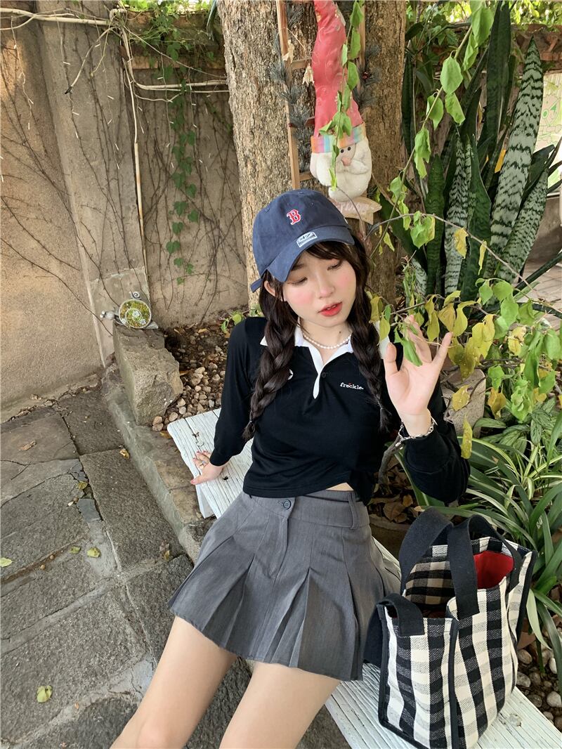 スタンダードショートカラースリムブラウス サマープリーツスカート レディース レトロ 夏物 kumikum36840424572