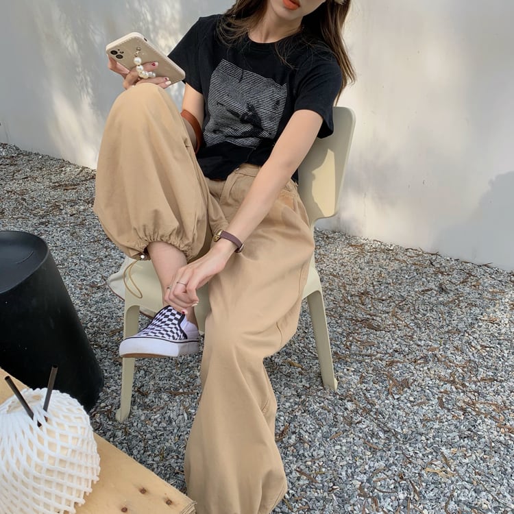 スタンダードハイウェストスリムカジュアルサマールーズジーンズ パンツ レディース レトロ 夏物 kumikum57425136303