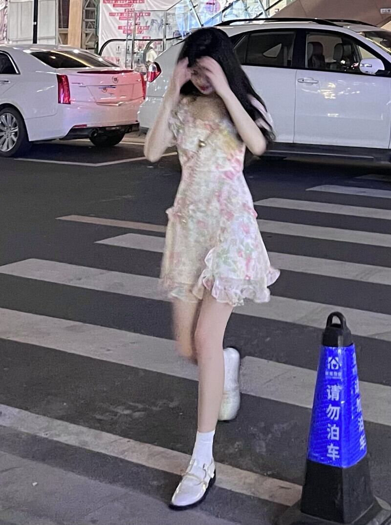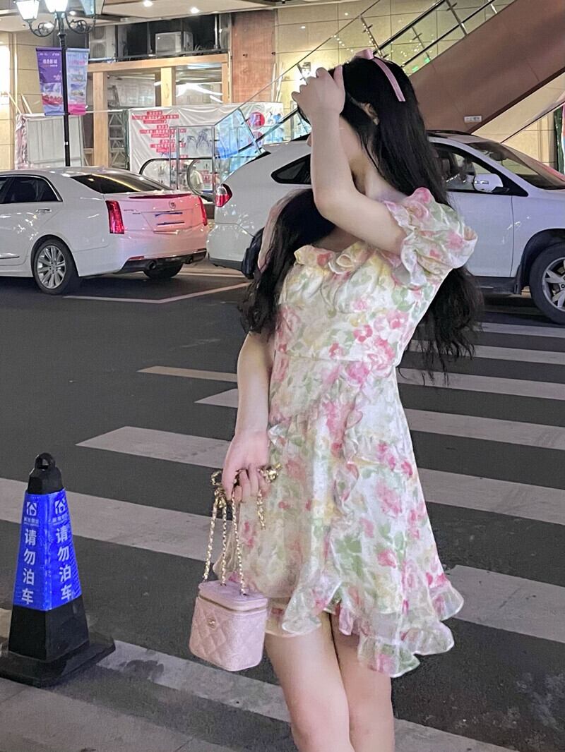 スタイルVネック薄手スリーブドレス サマースリムシフォンAラインスカート 夏物 kumikum19286101535